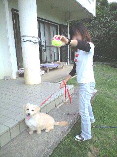 にリードをつなぎ、チビ