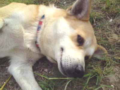 朝、保護わん達のお散歩が済んだところで、昨日我が家へ飛び込んできた放浪犬・小梅(仮称)にフロントラインを塗布した。