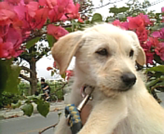 夕方お散歩へ出たら、散歩コースの途中でウロついているチビわんを発見